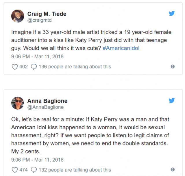 Katy Perry's ‘American Idol’ Kiss Points Up Double-Standard